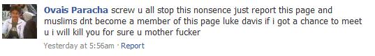 It's interesting that the threatening comments are poorly spelled. They appear to be using texting language. Are these nothing more than just teenagers threatening people? Are these really trolls who are not even Muslim looking for an excuse to tit late?